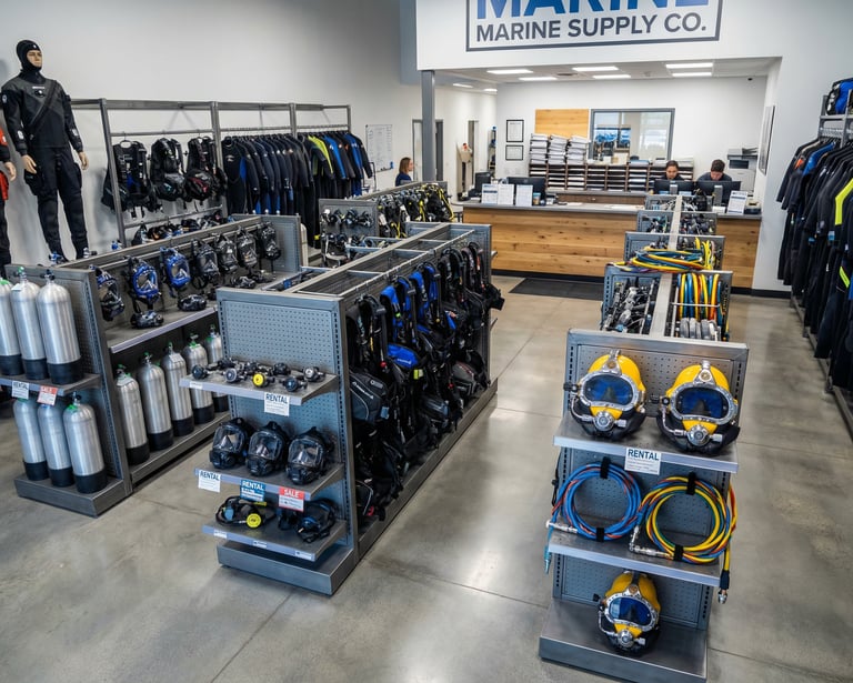 Quality diving equipment available for purchase or rental to meet your project needs. Our comprehensive inventory includes commercial diving equipment, safety gear, and support systems, with flexible rental terms and competitive pricing for both short-term and long-term requirements.